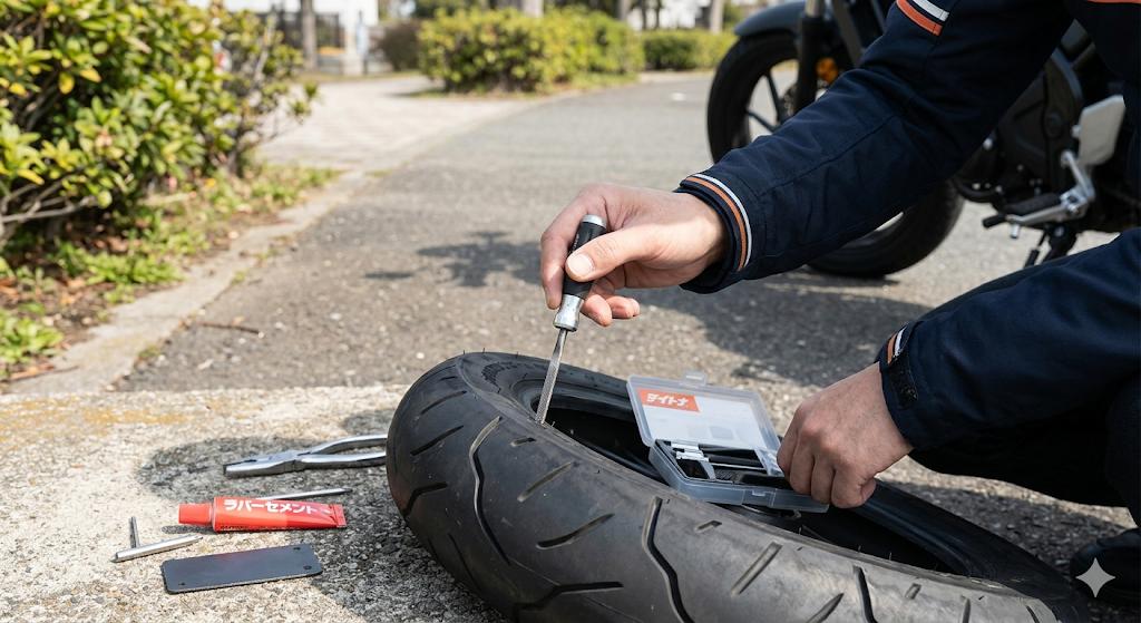 【神ツール】ツーリング中のパンクも怖くない!デイトナのハンディ修理セットの使い方が分かりやすすぎる件www
