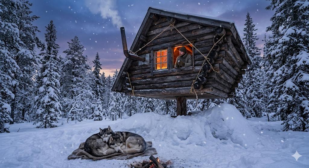 【狂気】雪山で「逆三角形の空中ログハウス」を作る男が現る!強度不足で崩落の危機か!?www