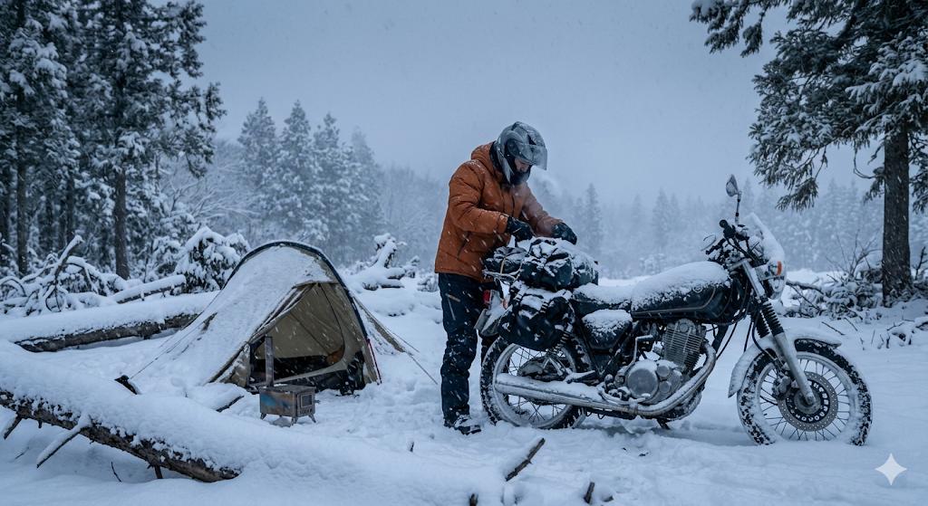 【地獄】寒波直撃の雪中キャンプにバイクで行った結果www忘れ物で往復2時間のロスからホワイトアウトの恐怖まで過酷すぎんだろ…